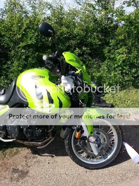 I would liken what happened to brake fade when brakes overheat, little happens and its too late before you can do anything. I had no where to go but hit the car. Nobody was hurt (minor injuries for me), R8 had superficial damage, lol. All my gear needs replaced. Tiger is essentially dead. It has a cracked frame, damage to rear can, LH side swing arm, tank, dash and headlight cluster is demolished, fairings, lights etc, foot peg etc etc. Used parts are over £800 just for the damage I can see. Bad news is I was third party only and it turns out I have a very high voluntary excess I will admit I didnt realise (ALWAYS READ THE SMALL PRINT).