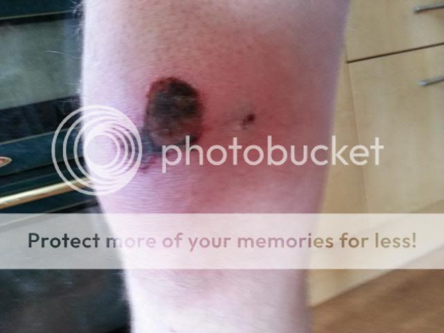 I had a bad burn and some swelling to my right knee where the armour slid down my shin, L elbow badly bruised and I hurt like id been beaten the next day, lol