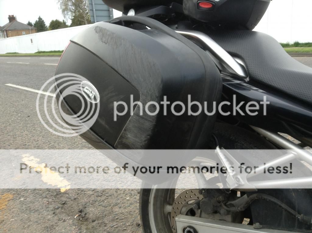 Some of you may have seen on twitter that I had a crash on Sunday evening, it was my fault, i went to touch my right hand pannier after someone behind be did a long (serious sounding) beep on their horn as I have had it fall off before. I don't know whether I then caught my brake or my bars or something (it's all gone blank) the next thing i know I'm sat up against a curb with my bike pissing oil everywhere. It was in a 30 zone just after a roundabout so I estimate my speed was 30.