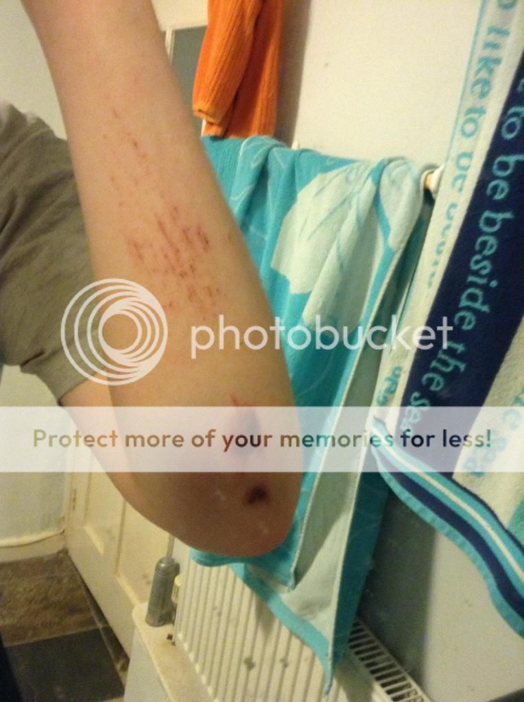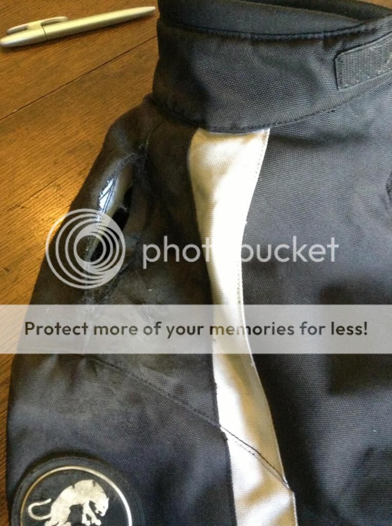 My jacket didn't do so well, it split at the seams and i got impact damage off the jacket material itself and some road rash on my right forearm. This has changed how I feel about textile jackets at the moment. The D3O armour did a good job and probably saved me from a worse break.