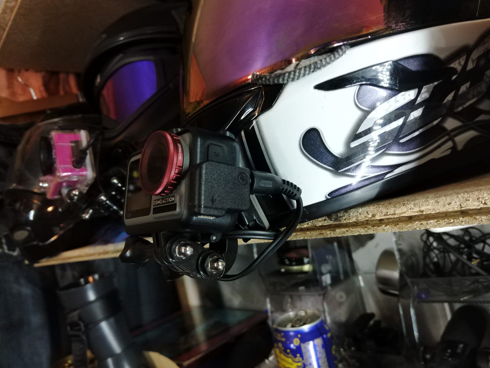 Just my Hero 8 mounted to my helmet via a curved arm. No external mic, instead I have the Hero 8 mounted by my chin and put a foam deadcat over the internal mics. Works well honestly!